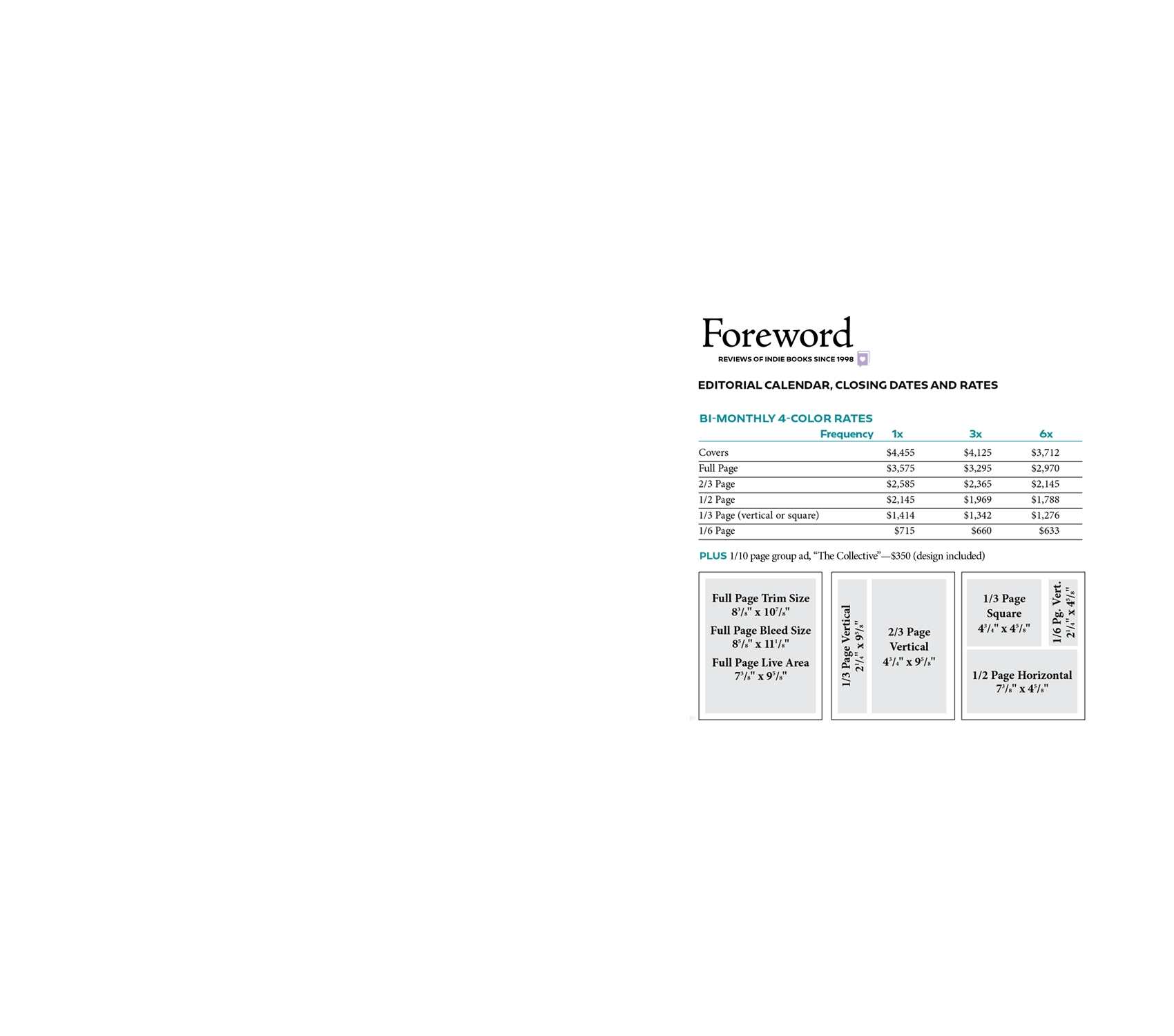 Work with our team to create the right approach for you. Contact Stacy Price at stacy@forewordreviews.com.